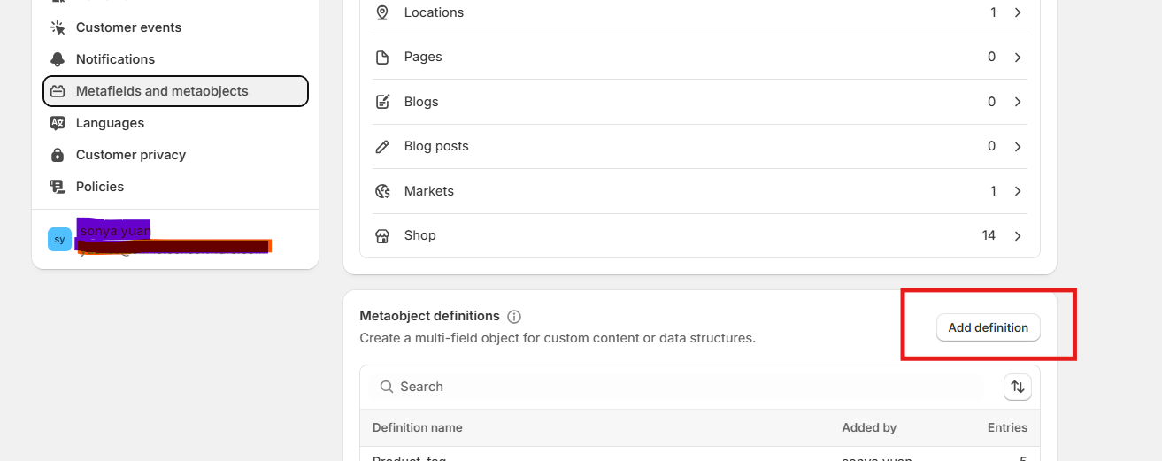 Step Two: Create a Metaobject Definition for Product FAQs