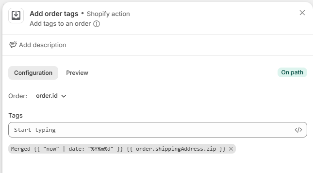 Merged {{ "now" | date: "%Y%m%d" }} {{ order.shippingAddress.zip }}This creates a clear grouping signal for your team.