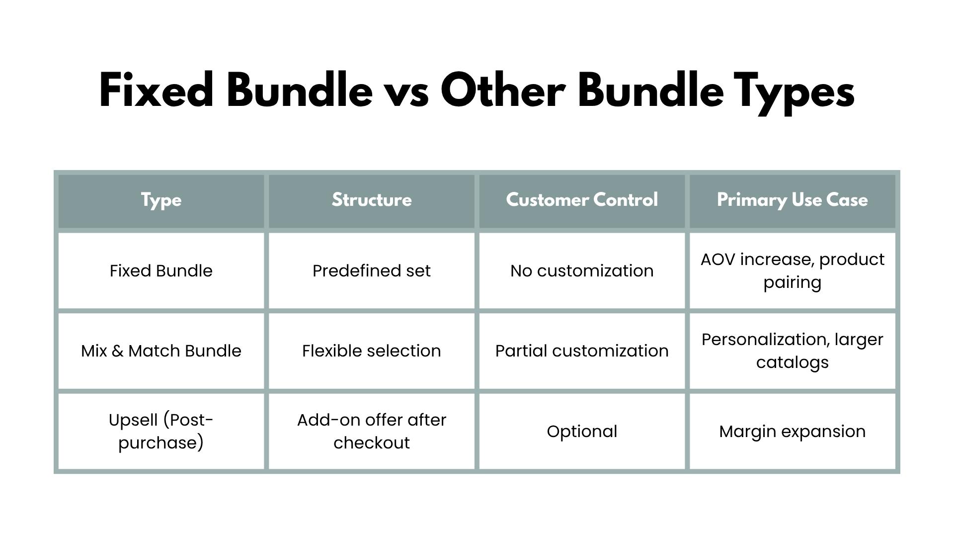 Fixed bundles prioritize simplicity and conversion efficiency over flexibility.